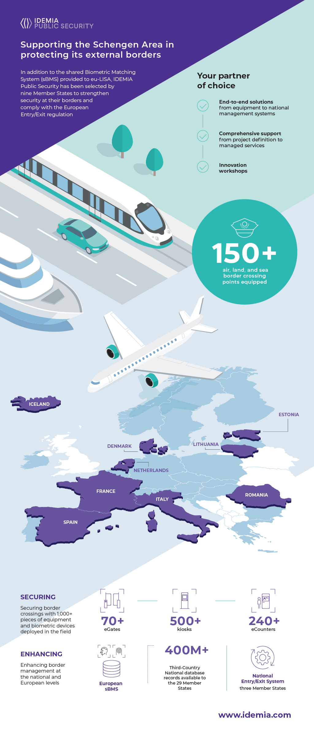 With over 150 border crossing points equipped across nine EU Member States, IDEMIA Public Security plays a key role in supporting the implementation of the EU Entry/Exit System (EES). Our cutting-edge biometric technologies ensure secure, seamless, and efficient border management—helping authorities protect citizens while facilitating smooth travel across Europe.